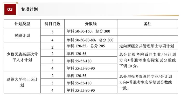 注*:按研究方向分計劃招生的,總分要求以考生報考的研究方向普通考生實際復(fù)試分?jǐn)?shù)線為參照基準(zhǔn)。