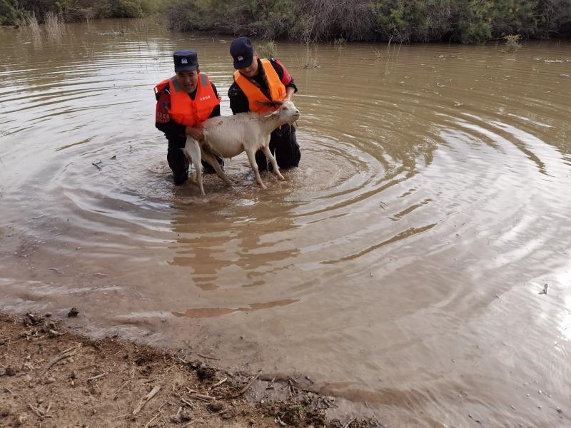 “請民警同志幫幫忙,我的羊群被困在河里了,這可是我的命根子啊!”2020年9月8日8時許,蘇泊淖爾邊境派出所一個報警電話打破了清晨的寧靜,來電的是內(nèi)蒙古額濟納旗蘇泊淖爾蘇木牧民布某。原來,夜里黑河漲水,他家的幾十只羊被困,望著身陷險境的羊群,焦急的布某打通了派出所的報警電話。