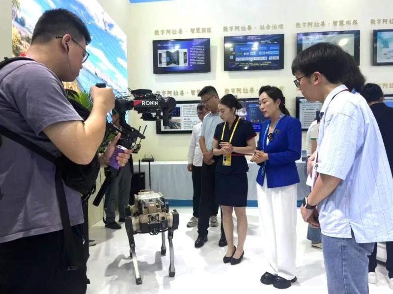 在“數(shù)智政務(wù)”體驗區(qū),參展嘉賓深入了解阿拉善盟依托一體化政務(wù)服務(wù)平臺實現(xiàn)政務(wù)事項“一網(wǎng)通辦”“掌上辦”的生動案例。實物陳列區(qū),全球首例駱駝瘤胃膠囊、“時光”雕刻機、“電子狗”“電子狼”等阿拉善盟應(yīng)用于各領(lǐng)域的諸多高科技產(chǎn)品一一亮相。在互動體驗區(qū),阿拉善禮物深受歡迎,“數(shù)字身份證”為阿拉善禮物追根溯源。同時,“阿拉善特色產(chǎn)業(yè)”平臺、“一億棵梭梭”互動系統(tǒng)、VR數(shù)游阿拉善等,充分體現(xiàn)了數(shù)字技術(shù)在特色產(chǎn)業(yè)、生態(tài)、文旅、政務(wù)領(lǐng)域的落地成效。