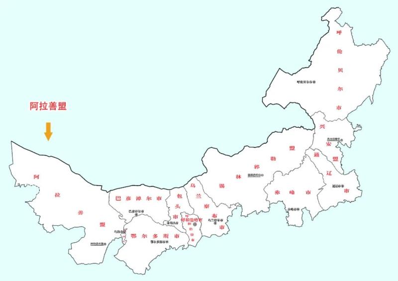 阿拉善盟地處內(nèi)蒙古自治區(qū)最西部,有“五彩斑斕之地”的美譽,下轄3個邊境旗及策克、烏力吉兩個邊境口岸,邊境線全長735公里。世界三大胡楊林之一的額濟納胡楊林、世界三大載人航天中心之一的東風(fēng)航天城(酒泉衛(wèi)星發(fā)射中心)坐落于此。額濟納地區(qū)出土的居延漢簡,被譽為20世紀(jì)初中國古文獻四大發(fā)現(xiàn)之一。