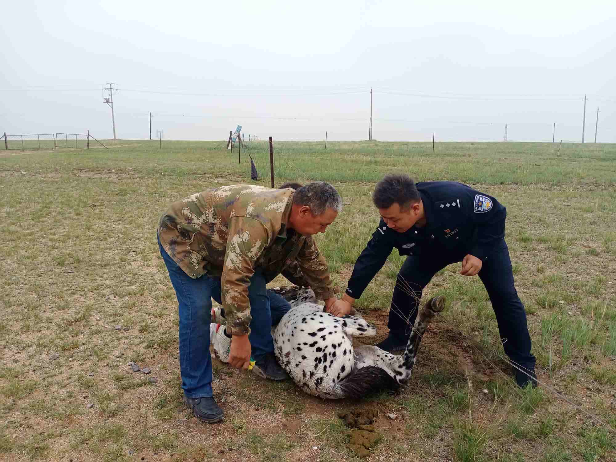 據(jù)了解,23日9時(shí)許,該所民警在下鄉(xiāng)走訪途中,遇到牧民群眾的小馬駒被鐵絲網(wǎng)困住無(wú)法掙脫,因鐵絲網(wǎng)網(wǎng)眼密集且十分牢固,牧民多次嘗試無(wú)果。在了解詳細(xì)情況后,為了防止小馬駒受傷并保證鐵絲網(wǎng)不受損害,民警和牧民利用鉗子將纏繞在馬蹄上的鐵絲小心解開(kāi),20分鐘后小馬駒“重獲自由”。