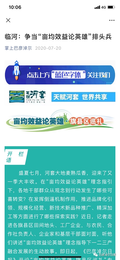 實(shí)施策采一體化以后,先后整體策劃推出了深度報(bào)道《河套——胡煥庸線(xiàn)西北的一個(gè)奇跡》,重磅述評(píng)《將畝均效益論英雄理念貫徹到底》《烏梁素海的前世今生》《塞上江南換新顏》等作品,從全新的角度解讀巴彥淖爾高質(zhì)量發(fā)展,被新華網(wǎng)、人民網(wǎng)、今日頭條廣泛轉(zhuǎn)載,廣受好評(píng)。重磅報(bào)道《Hello,我是金草胡羊,我回家鄉(xiāng)了!》《24小時(shí)做一根面條》《河套小麥,麩皮都能吃》等讓讀者耳目一新,受到自治區(qū)黨委宣傳部的充分肯定。