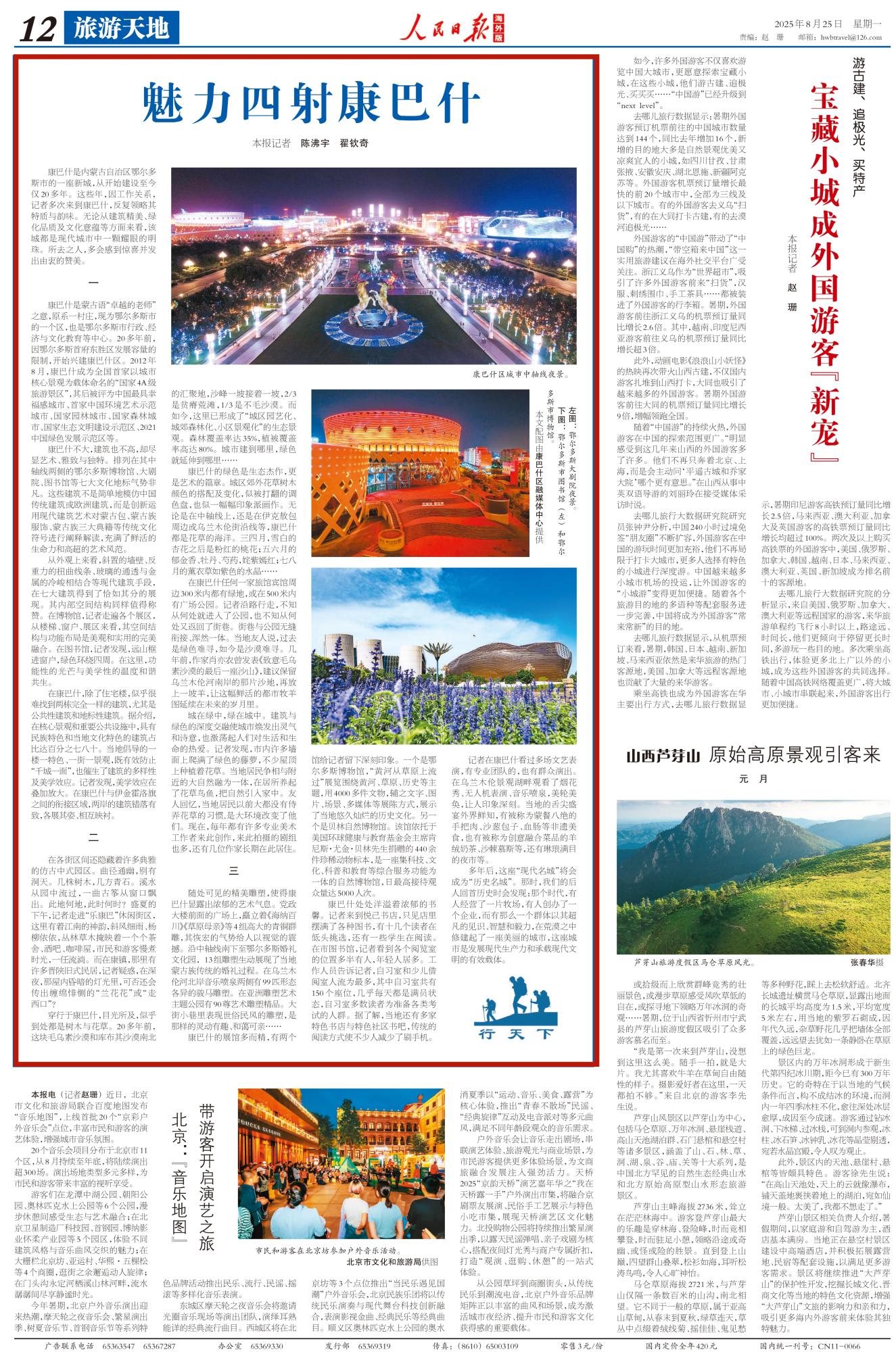 2025年8月25日,《人民日報(bào)海外版》第12版刊發(fā)題為《魅力四射康巴什》的文章,報(bào)道了因工作關(guān)系,記者多次來到康巴什,反復(fù)領(lǐng)略其特質(zhì)與韻味。無論從建筑精美、綠化品質(zhì)及文化意蘊(yùn)等方面來看,該城都是現(xiàn)代城市中一顆耀眼的明珠。所去之人,多會感到驚喜并發(fā)出由衷的贊美。