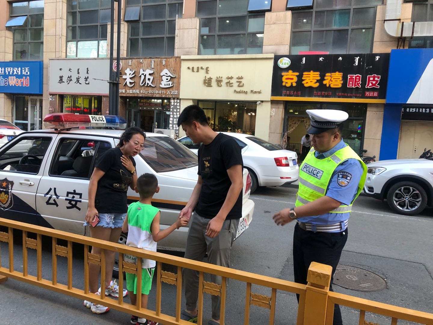 7月14日19時許,呼和浩特市萬達(dá)一巷,呼和浩特市公安局交警支隊賽罕大隊八中隊的民警正在這里巡邏。突然一名6歲左右的小男孩跑到執(zhí)勤交警律國偉面前:哭著說找不到父母,想請警察叔叔幫助尋找他的媽媽。