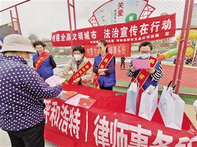 近日,玉泉區(qū)司法局西菜園司法所聯(lián)合正信公證處、祺翰律師事務所、鵬旭律師事務所、盛恒律師事務所在西苑家園小區(qū)廣場開展了創(chuàng)城法治宣傳活動。(記者 其布日哈斯 攝)
