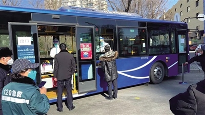 2月28日上午,在呼和浩特市新華大街附近,一輛敞開(kāi)了玻璃窗的公交車(chē)??吭诘缆放裕用駛儼凑找?guī)定間隔排隊(duì),依次來(lái)到公交車(chē)前進(jìn)行核酸采樣,醫(yī)務(wù)人員坐在車(chē)廂座椅有序地為市民進(jìn)行核酸采樣,受檢人員不用上車(chē),站在窗外,采完即走。
