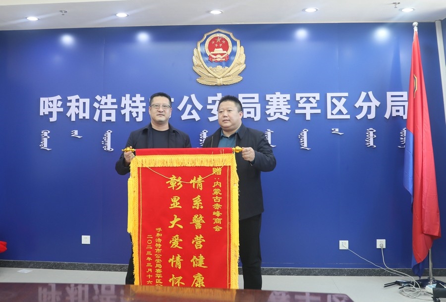 新華融媒、北疆新聞網(wǎng)、北疆新聞APP、北疆云消息(馬國(guó)鑫)3月17日,內(nèi)蒙古赤峰商會(huì)攜手內(nèi)蒙古蘭太藥業(yè)、內(nèi)蒙古蒙壹商貿(mào)公司,啟動(dòng)的“為奉獻(xiàn)者奉獻(xiàn)”公益行動(dòng),走進(jìn)呼和浩特市公安局賽罕區(qū)分局,向長(zhǎng)期奮戰(zhàn)在一線(xiàn)的人民警察,送去關(guān)心和關(guān)愛(ài)。