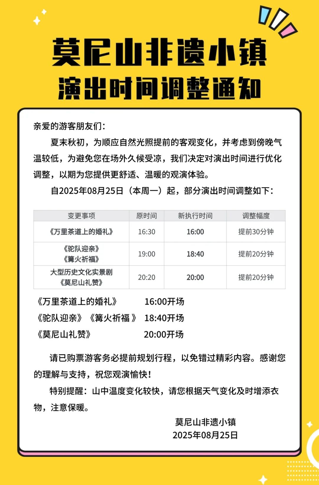 呼和浩特一景區(qū)調(diào)整演出時間!