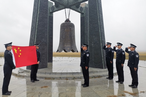 上午8時整,在塔日根諾爾邊境派出所,伴隨著雄壯的國歌聲,五星紅旗冉冉升起,全體民警肅然挺立,向在抗日戰(zhàn)爭中死難的同胞默哀。在諾門罕戰(zhàn)役紀(jì)念廣場的和平大鐘前,諾門罕布日德邊境派出所民警面向國旗,舉起右手,重溫人民警察誓詞,錚錚誓言響徹天際,感染并激勵著民警扎根北疆、建功北疆。巡邊途中,額布德格邊境派出所民警為界碑拭去灰塵,以獨有的方式向無數(shù)為國捐軀的革命烈士致以崇高敬意。罕達蓋邊境派出所組織觀看了《九一八事變》,通過觀影,警醒民警時刻銘記使命職責(zé),勿忘國恥,發(fā)奮圖強。