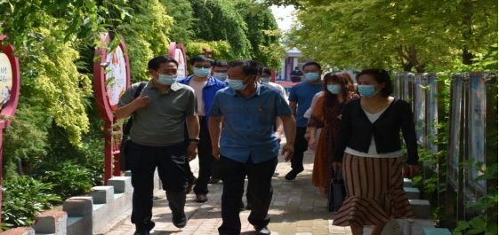 督導組一行走進教學樓,逐層觀看了學校的“讀書方法”“黨的二十大專題”“童心繪就新時代”“國防教育”“鑄牢中華民族共同體意識”等極富特色的樓層主題文化。