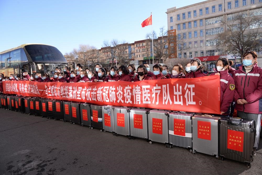 11月30日,烏蘭察布市馳援滿洲里市抗擊新冠肺炎疫情醫(yī)療隊出征。記者王俊平攝