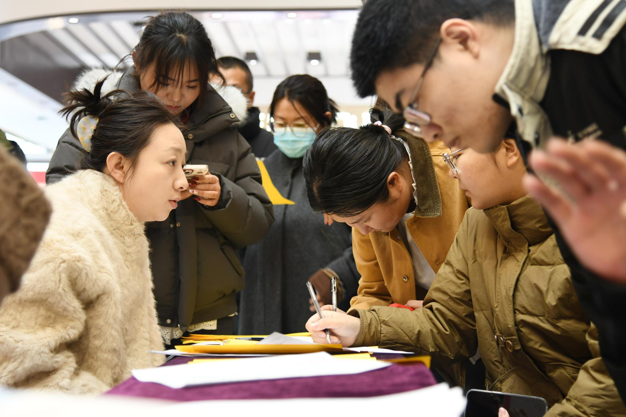招聘會吸引了眾多求職者前來咨詢、應(yīng)聘