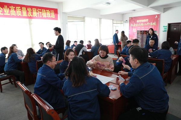 此次活動分為棋牌比賽、燈籠DIY、吃元宵等幾個環(huán)節(jié)。打撲克牌活動現(xiàn)場,選手們迅速進(jìn)入狀態(tài)。大家配合默契,沉著應(yīng)戰(zhàn),見招拆招,參與選手情緒高昂,積極踴躍,旁邊加油助威的人員各個興致昂揚(yáng)。鼓聲、笑聲、吶喊聲,此起彼伏,更是把文化活動的氣氛推向高潮。