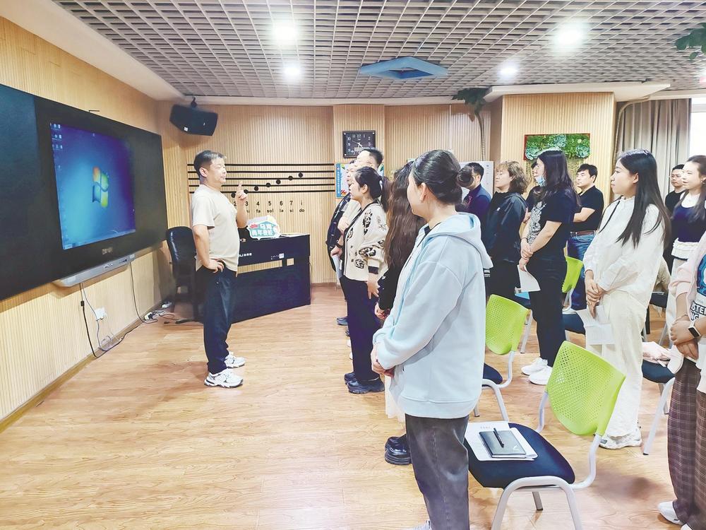 “注意,唱歌張嘴的時(shí)候也是有技巧的,跟說話不太一樣,大家跟著我一起練習(xí)。”4月17日,在烏??茖W(xué)技術(shù)館的一間聲樂教室里,一群青年人跟著老師學(xué)習(xí)唱歌技巧,這是今年“青年夜校”的課程之一——“青年合唱團(tuán)”課程。