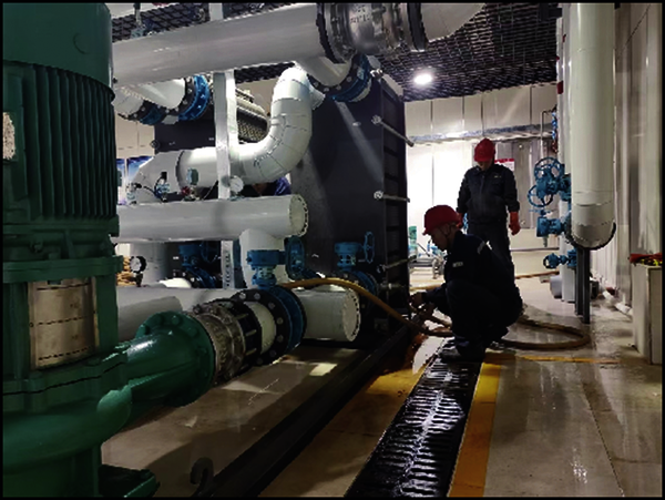 工作人員在小區(qū)換熱站檢修