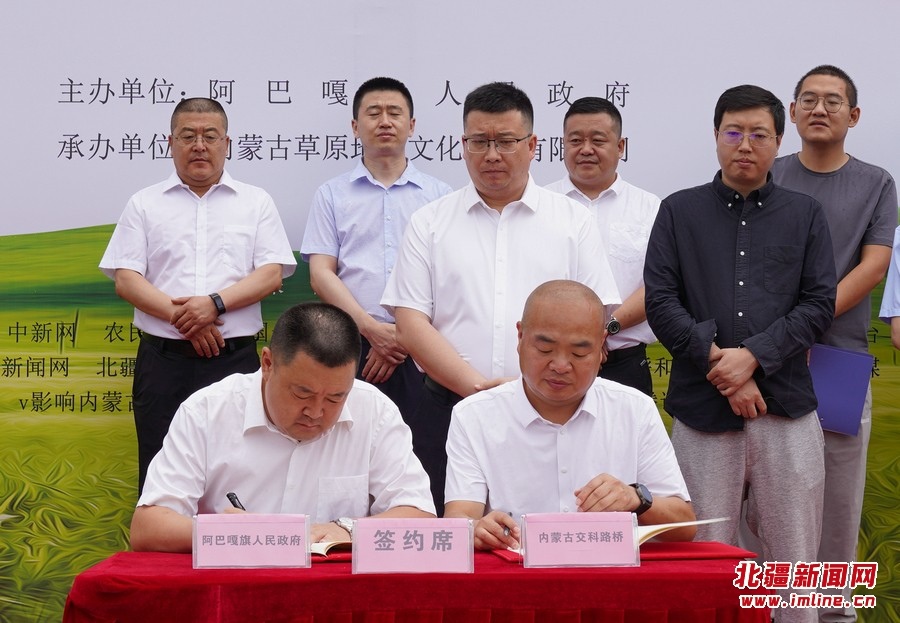 推介會(huì)現(xiàn)場(chǎng),阿巴嘎旗人民政府副旗長(zhǎng)李軍分別與內(nèi)蒙古交科路橋建設(shè)有限公司黨委書記、董事長(zhǎng)鈕英才,內(nèi)蒙古草原地圖文化傳播有限公司負(fù)責(zé)人王國(guó)柱簽訂戰(zhàn)略合作協(xié)議。