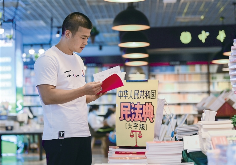 6月10日,呼和浩特市民在內(nèi)蒙古新華書店購(gòu)買《中華人民共和國(guó)民法典》。據(jù)工作人員介紹,《中華人民共和國(guó)民法典》自6月2日擺上貨架就十分吸引讀者目光,成為熱銷圖書,截至目前該書店訂購(gòu)量已逾2000冊(cè)。攝影/北方新報(bào)正北方網(wǎng)記者 牛天甲