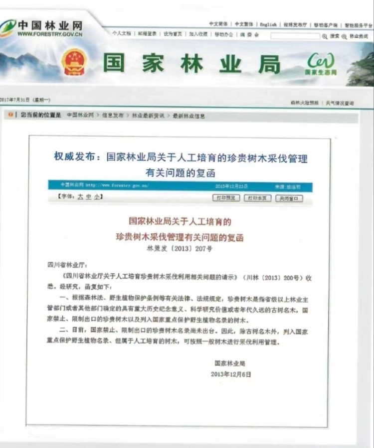 2020年3月,兩高批復(fù)明確“人工培育的植物,除古樹名木外,不屬于刑法第三百四十四條規(guī)定的‘珍貴樹木或者國家重點保護的其他植物’”。圖片來源/網(wǎng)頁截屏