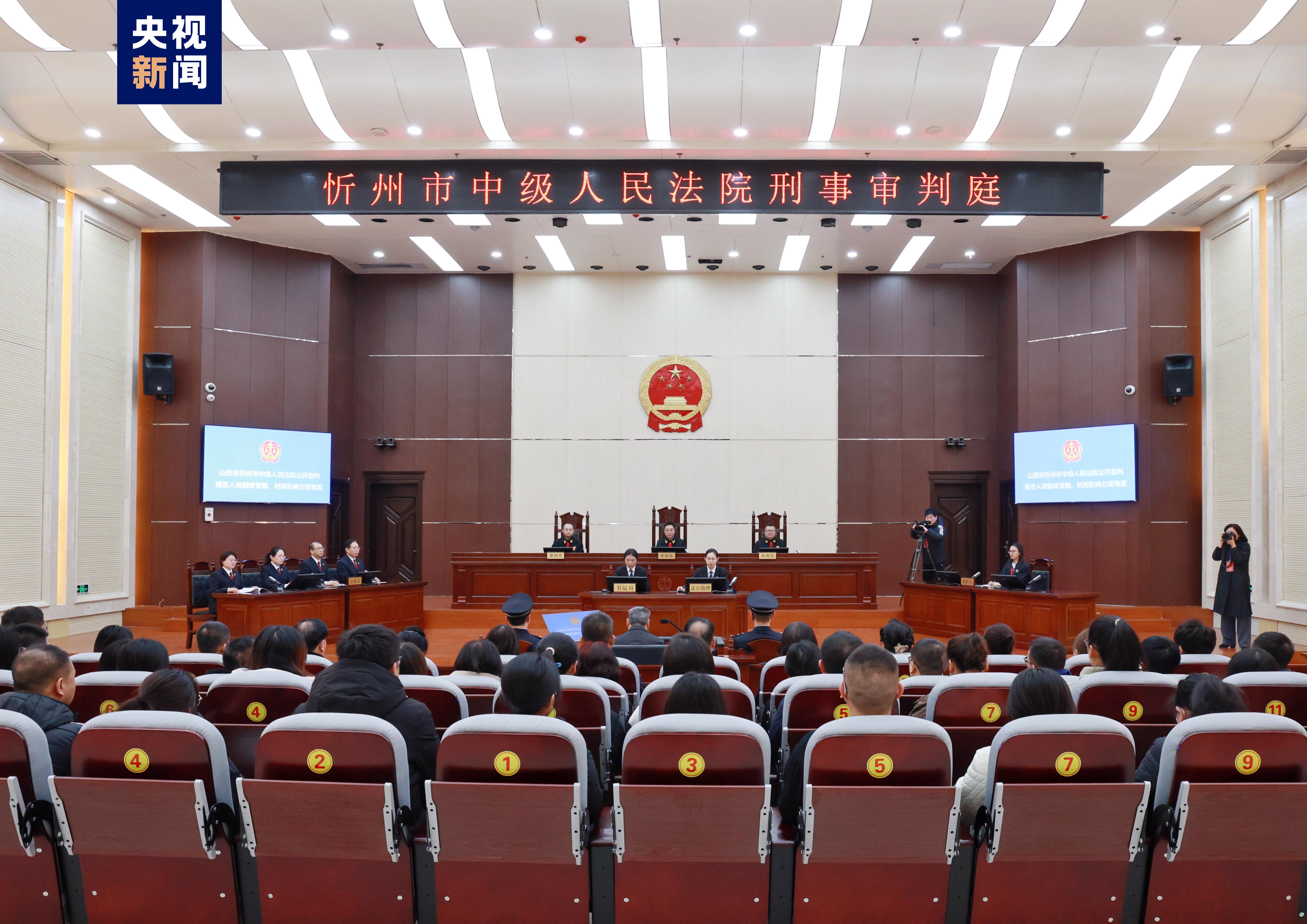 2024年1月9日,山西省忻州市中級(jí)人民法院一審公開(kāi)宣判內(nèi)蒙古自治區(qū)高級(jí)人民法院原黨組書(shū)記、院長(zhǎng)胡毅峰受賄、利用影響力受賄一案,對(duì)被告人胡毅峰以受賄罪判處有期徒刑十三年,并處罰金人民幣三百萬(wàn)元,以利用影響力受賄罪判處有期徒刑三年,并處罰金人民幣二十萬(wàn)元,決定執(zhí)行有期徒刑十四年,并處罰金人民幣三百二十萬(wàn)元;對(duì)查扣在案的胡毅峰犯罪所得財(cái)物及其孳息,依法予以追繳,上繳國(guó)庫(kù)。