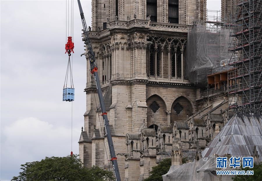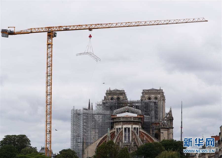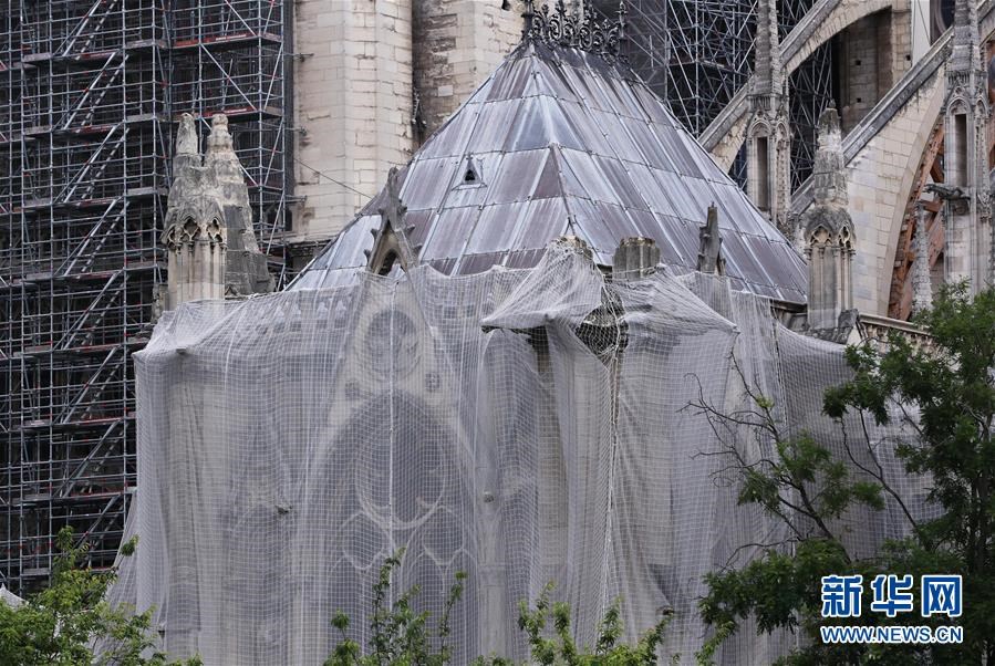 這是6月9日在法國巴黎拍攝的正在進行腳手架拆除工作的巴黎圣母院。法國巴黎圣母院于8日開始拆除去年大火中被焚的腳手架。作為巴黎圣母院修復工作的重要組成部分,這項工程預計將持續(xù)至少3個月。2019年4月15日,巴黎圣母院遭遇大火,當時圣母院正在進行維修,搭建的腳手架在火災(zāi)中損毀、變形。新華社記者高靜攝