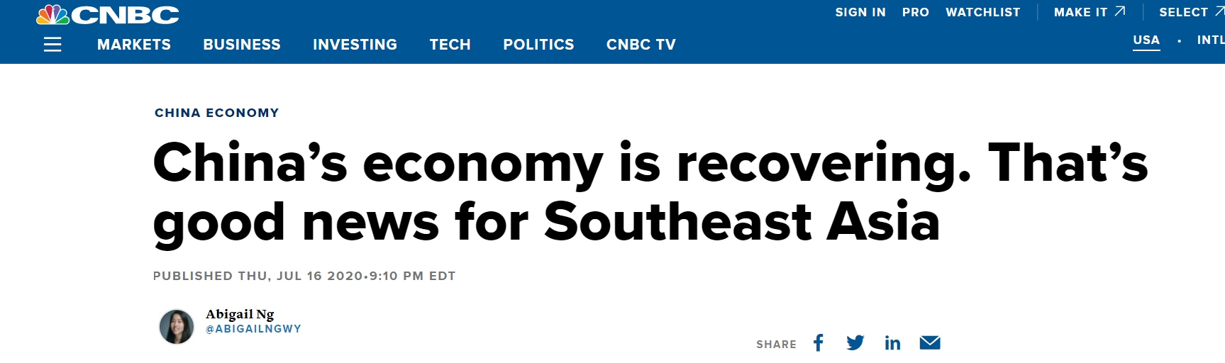 葡萄牙媒體Expresso指出,如果按季度環(huán)比衡量,那么中國經(jīng)濟已經(jīng)實現(xiàn)了“ V”型復蘇。Expresso注意到,盡管與美國發(fā)生了貿易摩擦,但外貿成為中國經(jīng)濟復蘇的活躍因素之一。在1月至5月間累計下降24%之后,6月出口再次增加。巴西《環(huán)球報》同樣報道稱,在經(jīng)歷了年初的歷史性低迷之后,中國經(jīng)濟第二季度再次增長,這是克服新冠病毒大流行危機的全球斗爭中重要的里程碑。