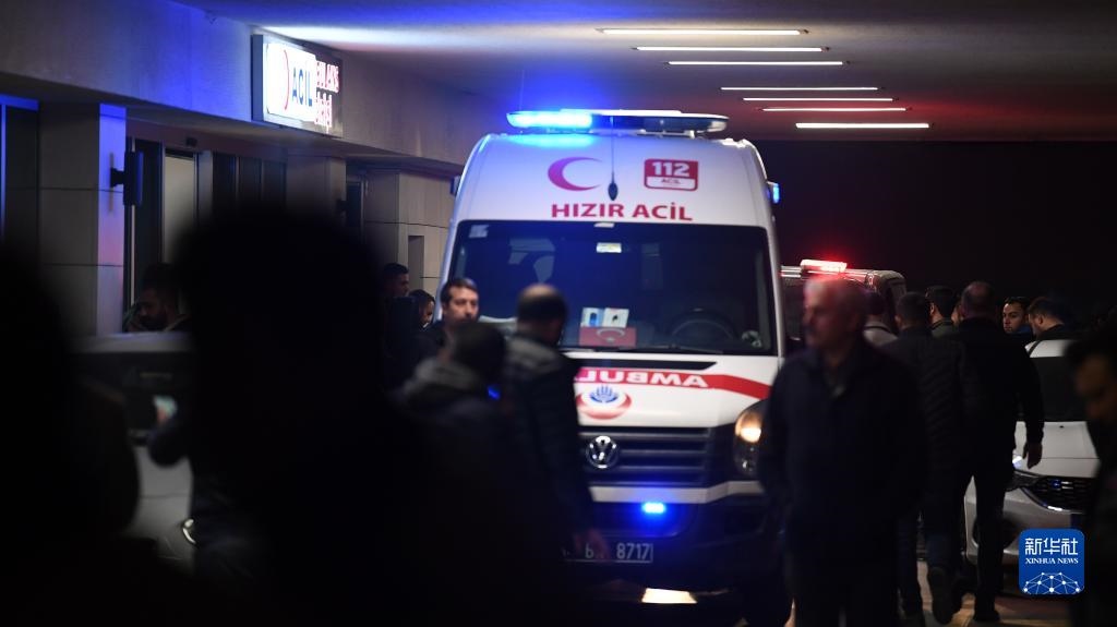 11月13日,一輛救護(hù)車(chē)停在土耳其伊斯坦布爾市中心塔克西姆廣場(chǎng)附近一家醫(yī)院。新華社記者沙達(dá)提攝