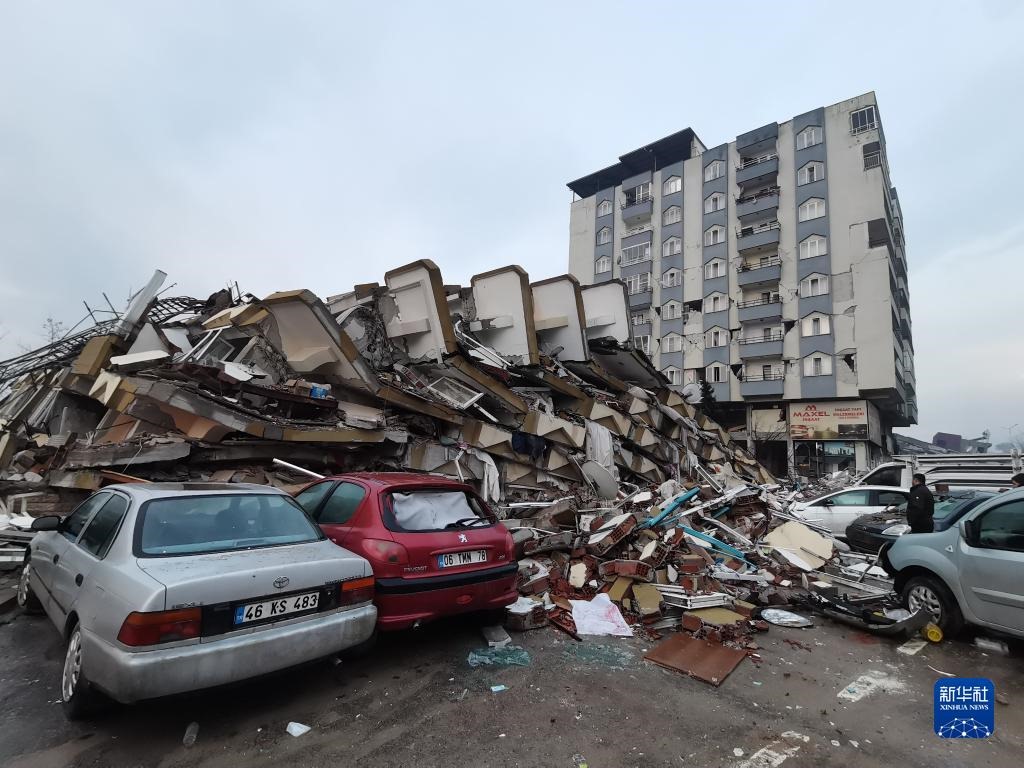 這是2月7日在土耳其卡赫拉曼馬拉什拍攝的一處倒塌的建筑(手機照片)。新華社記者 李振北 攝