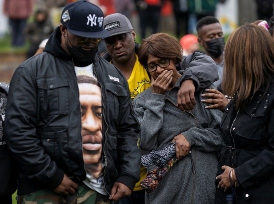 2022年5月25日,在美國明尼蘇達州明尼阿波利斯市,弗洛伊德的家人參加哀悼活動,紀念弗洛伊德遇害兩周年。新華社發(fā)(本·布魯爾攝)