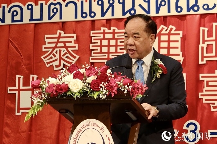 泰國樞密院主席素拉育·朱拉暖在典禮上致辭。實(shí)習(xí)生 冷江濤攝