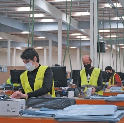 工作人員在西班牙瓜達(dá)拉哈拉市海外倉(cāng)中工作。 孟鼎博攝(新華社發(fā))