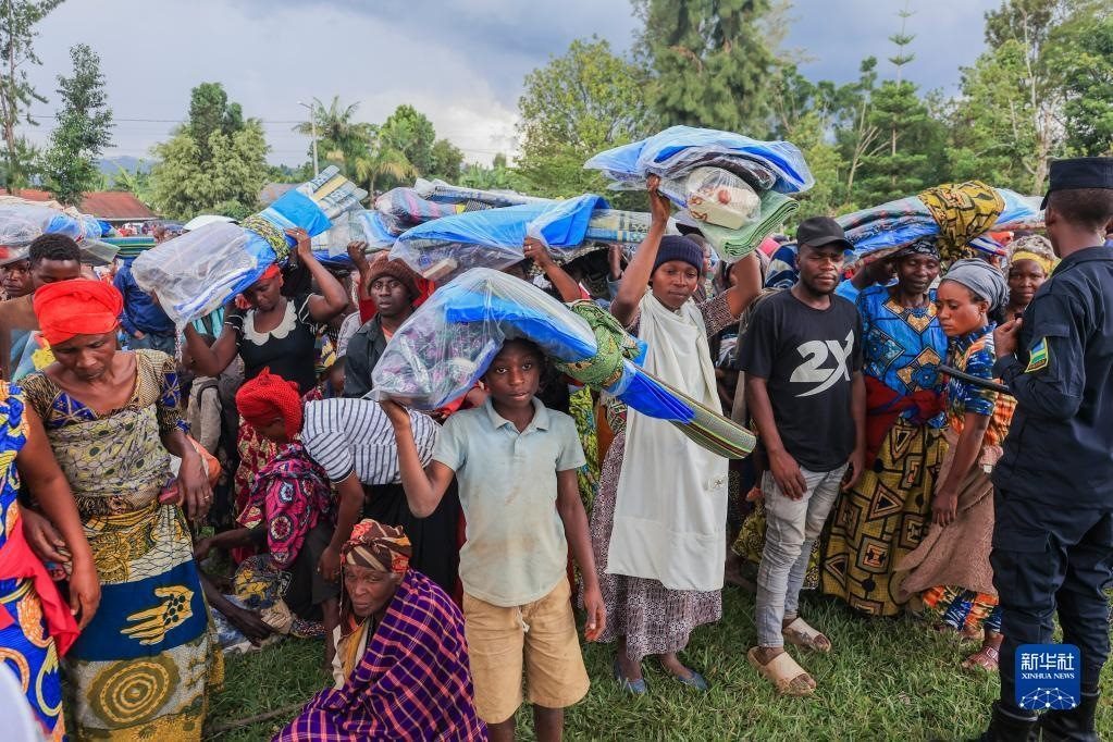 5月4日,災(zāi)民在盧旺達西方省領(lǐng)取賑災(zāi)物資。