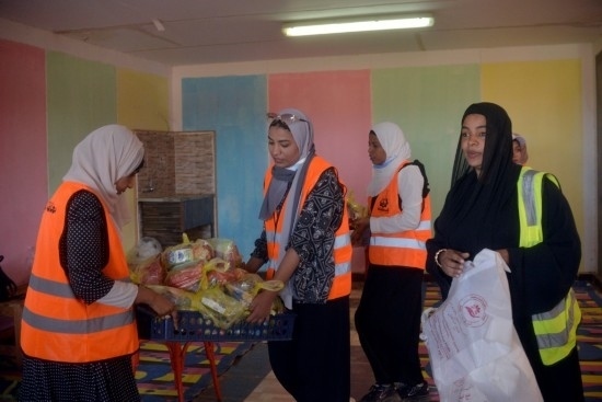 5月2日,在埃及南部阿斯旺省,工作人員為逃離蘇丹進(jìn)入埃及的難民準(zhǔn)備救濟(jì)包裹。新華社發(fā)(拉德萬攝)