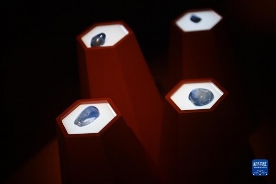 這是在陜西歷史博物館拍攝的藍(lán)寶石(5月11日攝)。天然寶石通過絲綢之路以商業(yè)貿(mào)易的形式進(jìn)入中國(guó)。