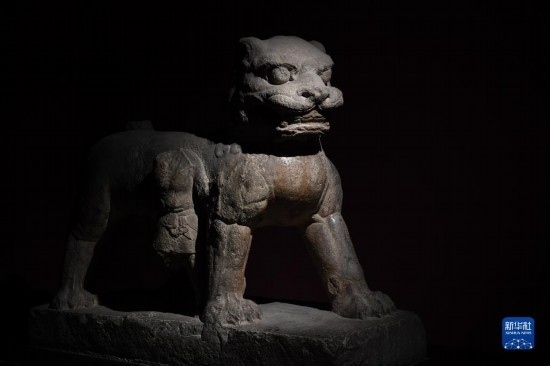 這是在西安碑林博物館拍攝的唐代石獅(5月9日攝)。古代中國(guó)的獅子多通過絲綢之路由外國(guó)進(jìn)貢而來。