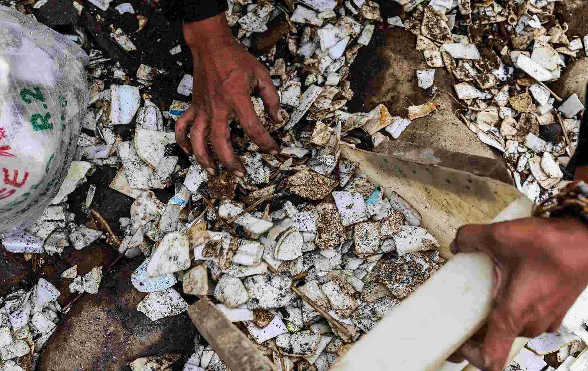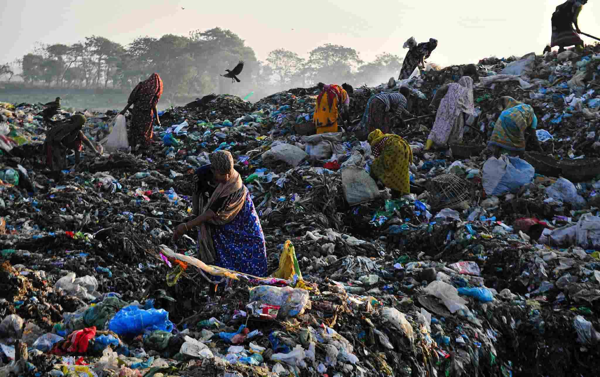 當(dāng)?shù)貢r(shí)間2023年1月2日,孟加拉國錫爾赫特,工人們?cè)谝粋€(gè)有毒廢物傾倒場(chǎng)工作。