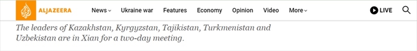 卡塔爾半島電視臺網(wǎng)站18日報道稱,中國-中亞峰會在中國西安舉行,為期兩天的峰會由中國國家主席習(xí)近平主持,哈薩克斯坦、吉爾吉斯斯坦、塔吉克斯坦、土庫曼斯坦和烏茲別克斯坦五國領(lǐng)導(dǎo)人應(yīng)邀參會,中亞五國都是共建“一帶一路”倡議的重要參與者。報道指出,此次峰會對中亞地區(qū)而言是一個實現(xiàn)經(jīng)濟多元化發(fā)展的機會。
