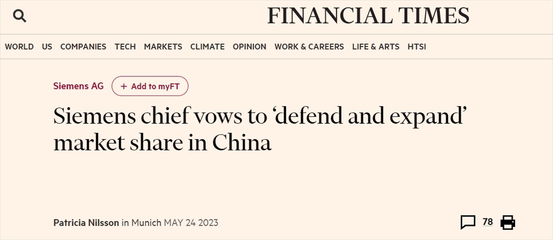 西門子首席執(zhí)行官博樂仁(Roland Busch)近期在接受英國(guó)《金融時(shí)報(bào)》采訪時(shí)表示,中國(guó)客戶是推動(dòng)這家德國(guó)工程巨頭持續(xù)創(chuàng)新的動(dòng)力,他要“捍衛(wèi)”和“擴(kuò)大”公司在中國(guó)的市場(chǎng)份額。