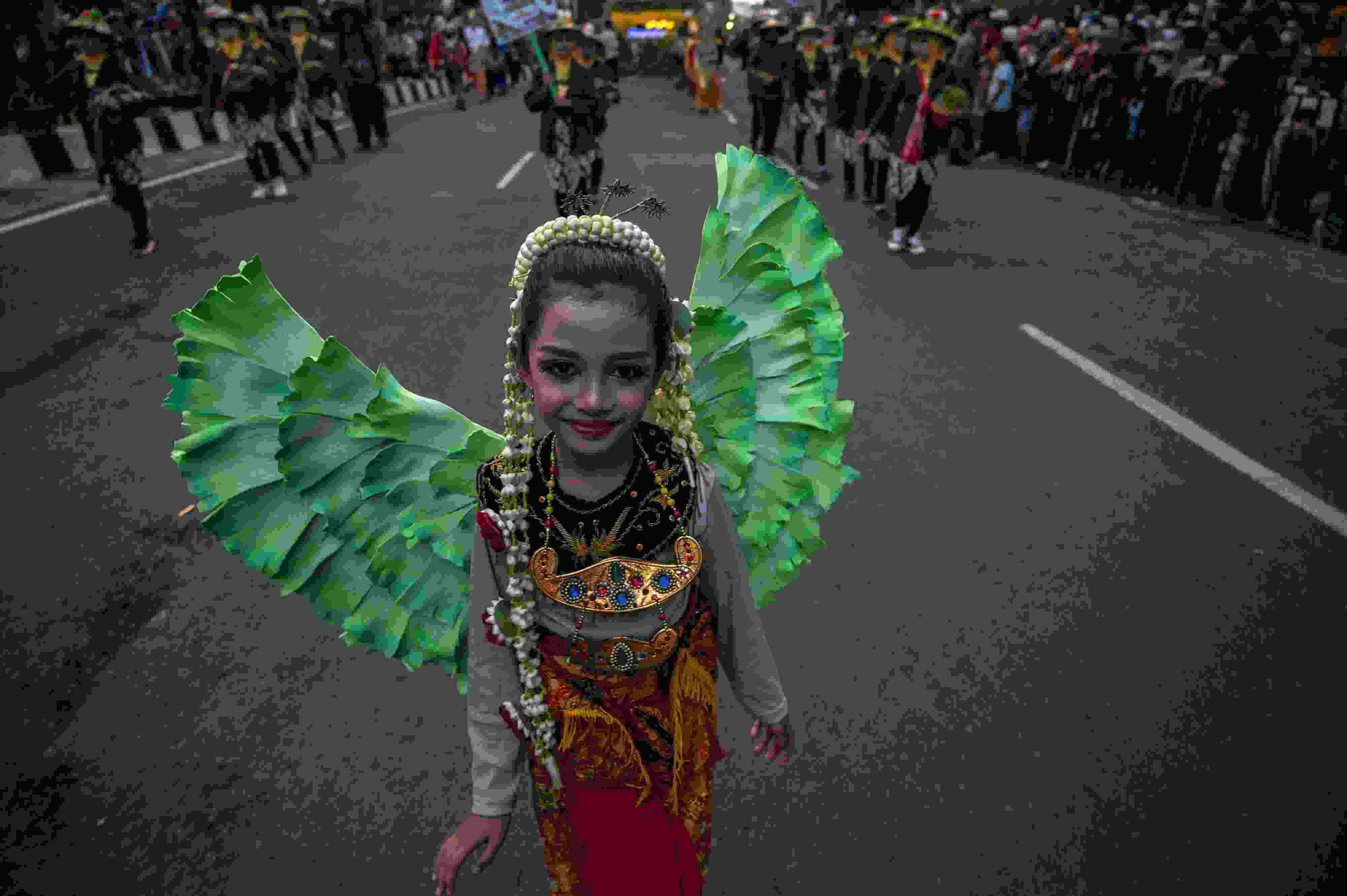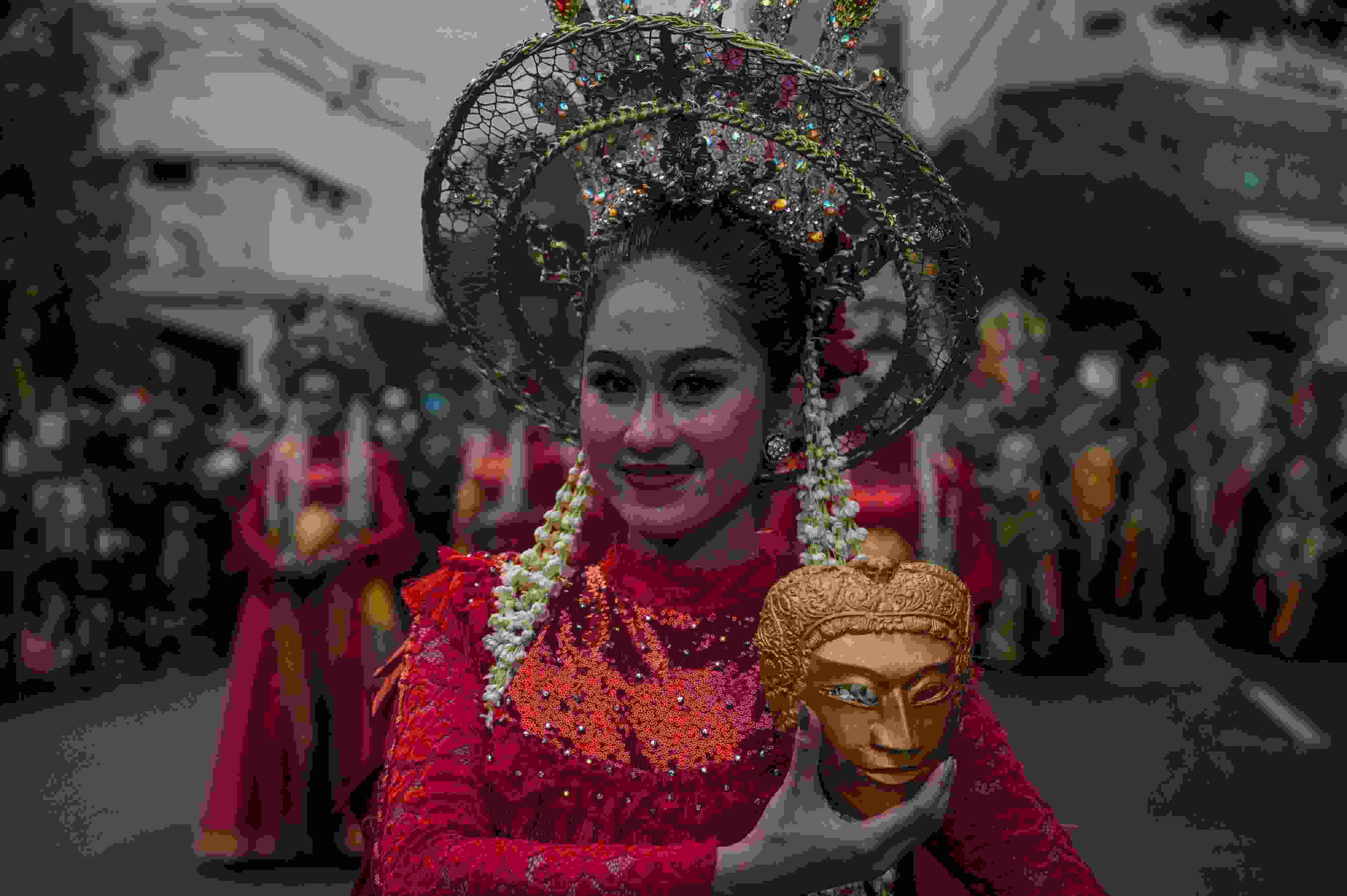 當(dāng)?shù)貢r(shí)間2023年5月27日,印度尼西亞泗水,表演者參加慶祝建城730周年的街頭游行。 視覺中國