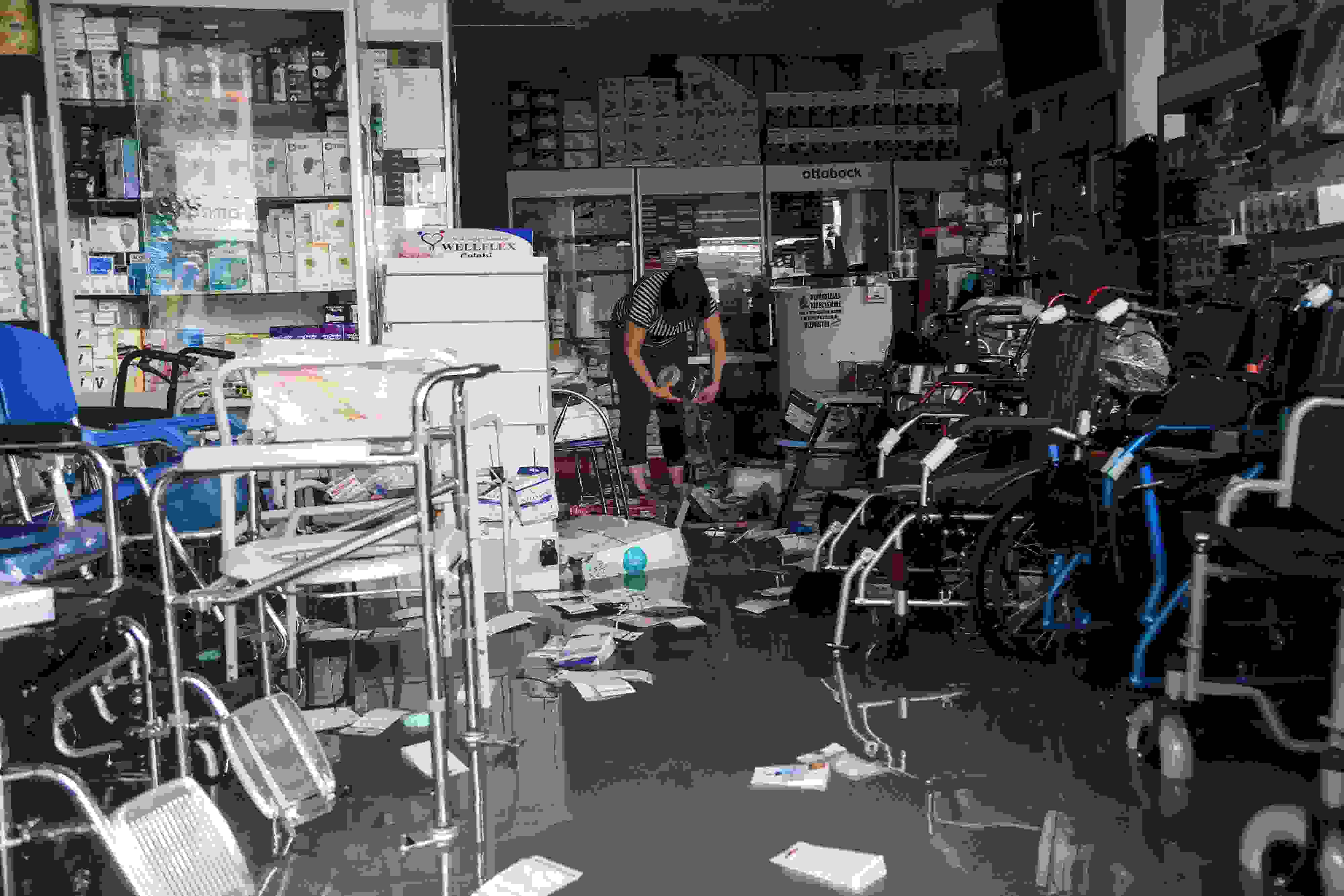 當?shù)貢r間2023年6月11日,土耳其安卡拉,暴雨襲擊過后,洪水淹沒街道,一家商鋪被淹。 視覺中國