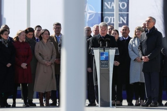 4月4日,在比利時(shí)布魯塞爾的北約總部,芬蘭總統(tǒng)尼尼斯托在芬蘭加入北約儀式上發(fā)言。新華社記者鄭煥松攝