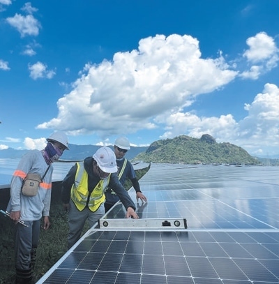 菲律賓圣馬塞利諾光伏項(xiàng)目由中國電力建設(shè)集團(tuán)有限公司承建,項(xiàng)目建成后將成為該國最大的光伏電站,每年將為菲律賓供電5.9億千瓦時(shí)。圖為中方工程師(中)帶領(lǐng)菲方工作人員檢查調(diào)試光伏支架。楊獲然攝