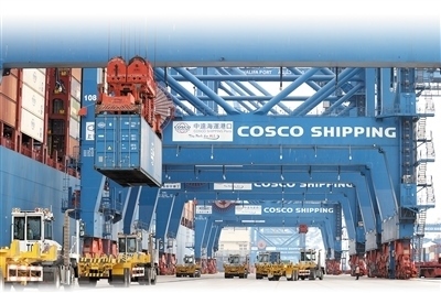 中遠(yuǎn)海運(yùn)港口阿聯(lián)酋阿布扎比碼頭采用岸橋預(yù)留自動(dòng)化和堆場(chǎng)自動(dòng)化作業(yè)模式,可作業(yè)超2萬標(biāo)準(zhǔn)箱大型船舶,年設(shè)計(jì)能力250萬標(biāo)準(zhǔn)箱。本報(bào)中東中心分社 納達(dá)爾·達(dá)烏德攝