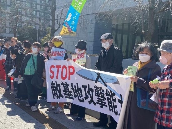 2023年2月28日,在日本東京,日本民眾舉著標語牌抗議日本眾議院通過高額的防衛(wèi)費預(yù)算案。新華社記者郭丹攝