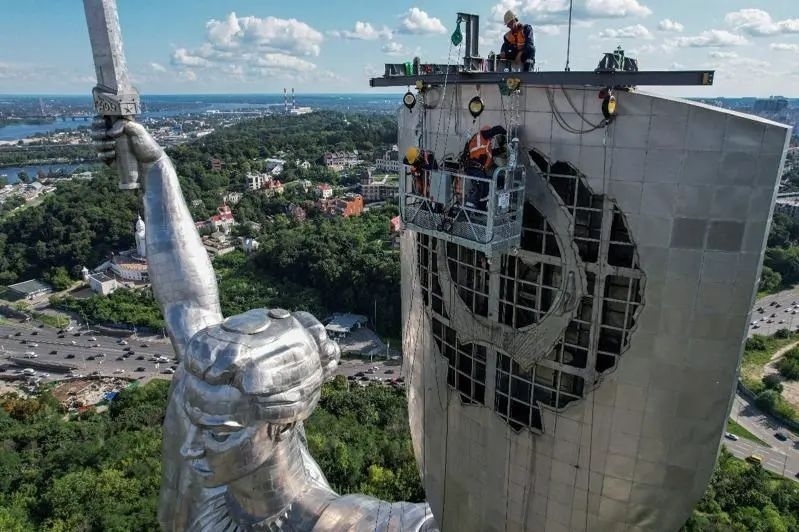 8月5日,用以替換烏克蘭首都基輔“祖國(guó)母親”雕像上的蘇聯(lián)國(guó)徽的配件運(yùn)抵基輔,在原蘇聯(lián)國(guó)徽的位置上的新標(biāo)志是烏克蘭國(guó)徽“三叉戟”。