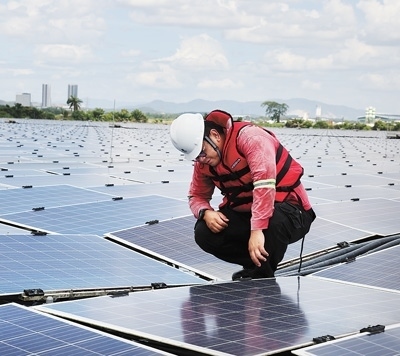 馬來西亞雪蘭莪州10兆瓦水面漂浮式光伏電站在自然湖上興建,是該國運(yùn)行的首個(gè)水面光伏項(xiàng)目。該項(xiàng)目由中國國家電投集團(tuán)上海能源科技發(fā)展有限公司總承包,于2020年8月實(shí)現(xiàn)全容量并網(wǎng)發(fā)電,目前運(yùn)營良好,月發(fā)電量約為145萬千瓦時(shí),促進(jìn)當(dāng)?shù)鼐G色電力發(fā)展。