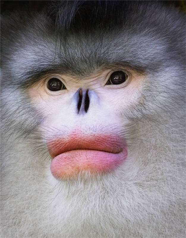 記得我和助手連續(xù)幾天反復(fù)登山,幾周后,我們終于發(fā)現(xiàn)了金絲猴。它們看起來(lái)就像做了整容手術(shù),有著大紅唇等獨(dú)特的特征。有一天,我順著山路,壓根沒(méi)在想金絲猴。突然,我發(fā)現(xiàn)在我腳邊,它正直視著我,我轉(zhuǎn)身按動(dòng)快門(mén),抓拍到那張近距離的動(dòng)物肖像。