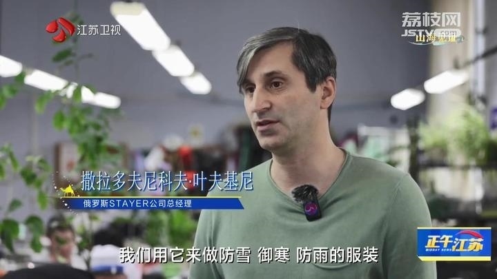 俄羅斯STAYER公司總經(jīng)理撒拉多夫尼科夫·葉夫基尼說:“這都是剛從中國運(yùn)過來的布料,它們具有防水性,透氣性,我們用它來做防雪、御寒、防雨的服裝。所有人都贊成中國的布料越來越好,近三年的計(jì)劃是加強(qiáng)與合作伙伴的聯(lián)系,擴(kuò)大布料的購買量,期待有好的發(fā)展。”
