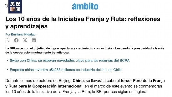 阿根廷著名經(jīng)濟(jì)類日?qǐng)?bào)《金融界報(bào)》在官網(wǎng)發(fā)表評(píng)論文章,回顧了共建“一帶一路”倡議的發(fā)展歷程和帶給世界的思考和借鑒。文章稱,經(jīng)過(guò)十年發(fā)展,該倡議已覆蓋全球150多個(gè)國(guó)家,為世界互利共贏合作樹立了榜樣。