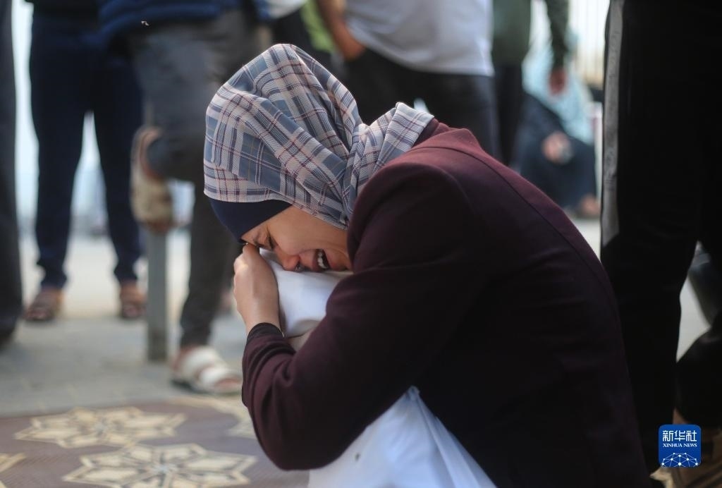 10月21日,在加沙地帶南部地區(qū),一名女子為逝去的親友哭泣。新華社發(fā)(哈立德·奧馬爾攝)