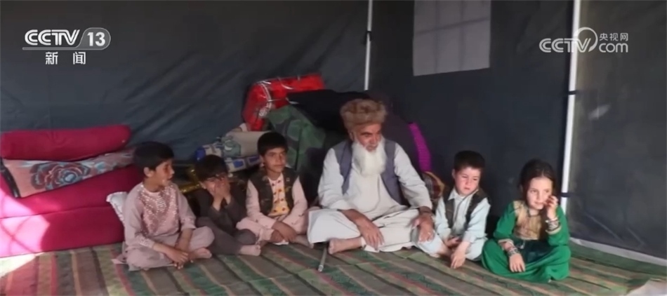 在受地震影響最嚴(yán)重的阿富汗赫拉特省津達詹區(qū),一頂頂中國援助的藍色帳篷搭建在廢墟旁的空地上。67歲的謝林和孫子、孫女被安置在其中一間帳篷里,帳篷內(nèi)堆放著毛毯、被褥和一些基本的生活用品。跟大多數(shù)村民一樣,謝林家的土坯房在強震中被夷為平地,他和家人不得不在戶外露宿多天。他說,多虧了這些及時運抵的中國帳篷,他們才有了一個遮風(fēng)擋雨的庇護所。